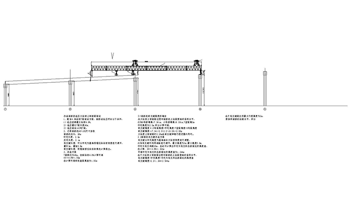 架梁之后要立即鋪軌,架橋機才能繼續向前作業。后兩種架橋機一般都能將預先組裝好的軌排吊裝就位,使架梁工作不致因鋪軌而造成延誤。 除上述常備架橋機外,施工單位有時根據需要制作各種臨時性架橋機。如在九江橋南岸引橋施工中,曾制成一臺可吊重300噸的專用架橋機,以整孔架設跨度40米的無碴無枕預應力混凝土梁。有的施工單位還常用常備鋼腳手桿件、拆裝式梁或軍用梁等組成簡易架橋機,及時完成架橋任務。技術參數: