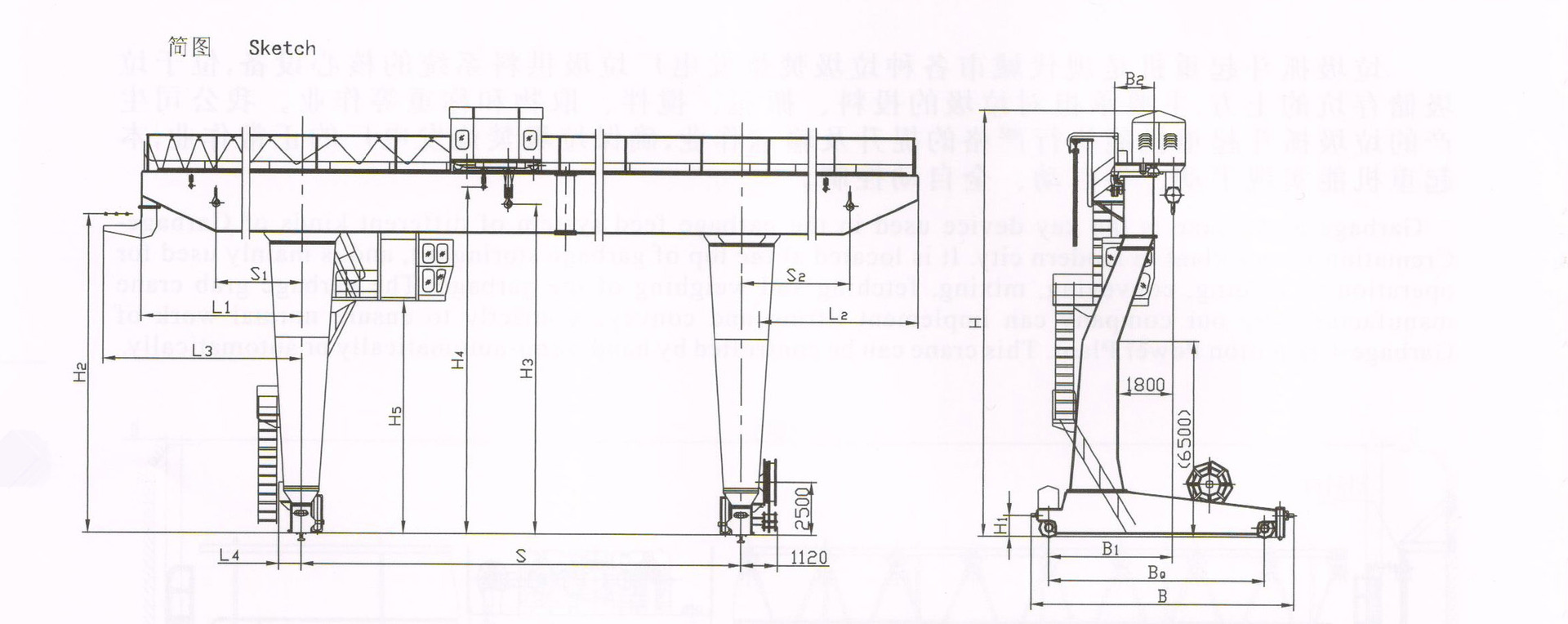 主梁形式 1.單主梁 單主梁門式起重機結構簡單,制造安裝方便,自身質量小,主梁多為偏軌箱形架結構。與雙主梁門式起重機相比,整體剛度要弱一些。因此,當起重量Q≤50t、跨度S≤35m時,可采用這種形式。單主梁門式起重機門腿有L型和C型兩種形式。L型的制造安裝方便,受力情況好,自身質量較小,但是,吊運貨物通過支腿處的空間相對小一些。C型的支腳做成傾斜或彎曲形,目的在于有較大的橫向空間,以使貨物順利通過支腳。