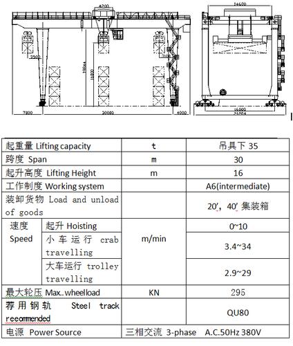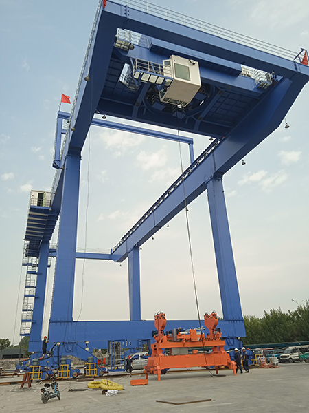集裝箱門式起重機是大型專業(yè)化集裝箱堆場的專用機械,裝卸標準集裝箱,主要用于集裝箱鐵路轉運場和大型集裝箱儲運場的集裝箱裝卸、搬運和堆放。它不僅適用于集裝箱碼頭的堆場,同樣也適用于集裝箱專用堆場。