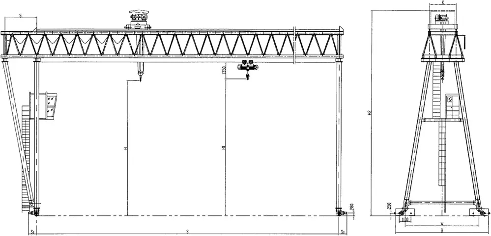 提梁機是一種為橋梁建設而專門設計的一種門式起重機。提梁機主要由拼裝式主梁、支腿、天車等組成,構件間采用銷軸及高強螺栓連接,易于拆裝、運輸;與普通門式起重機相比,安裝方便快捷,經濟實用。適用于經常流動的道路橋梁建設單位。